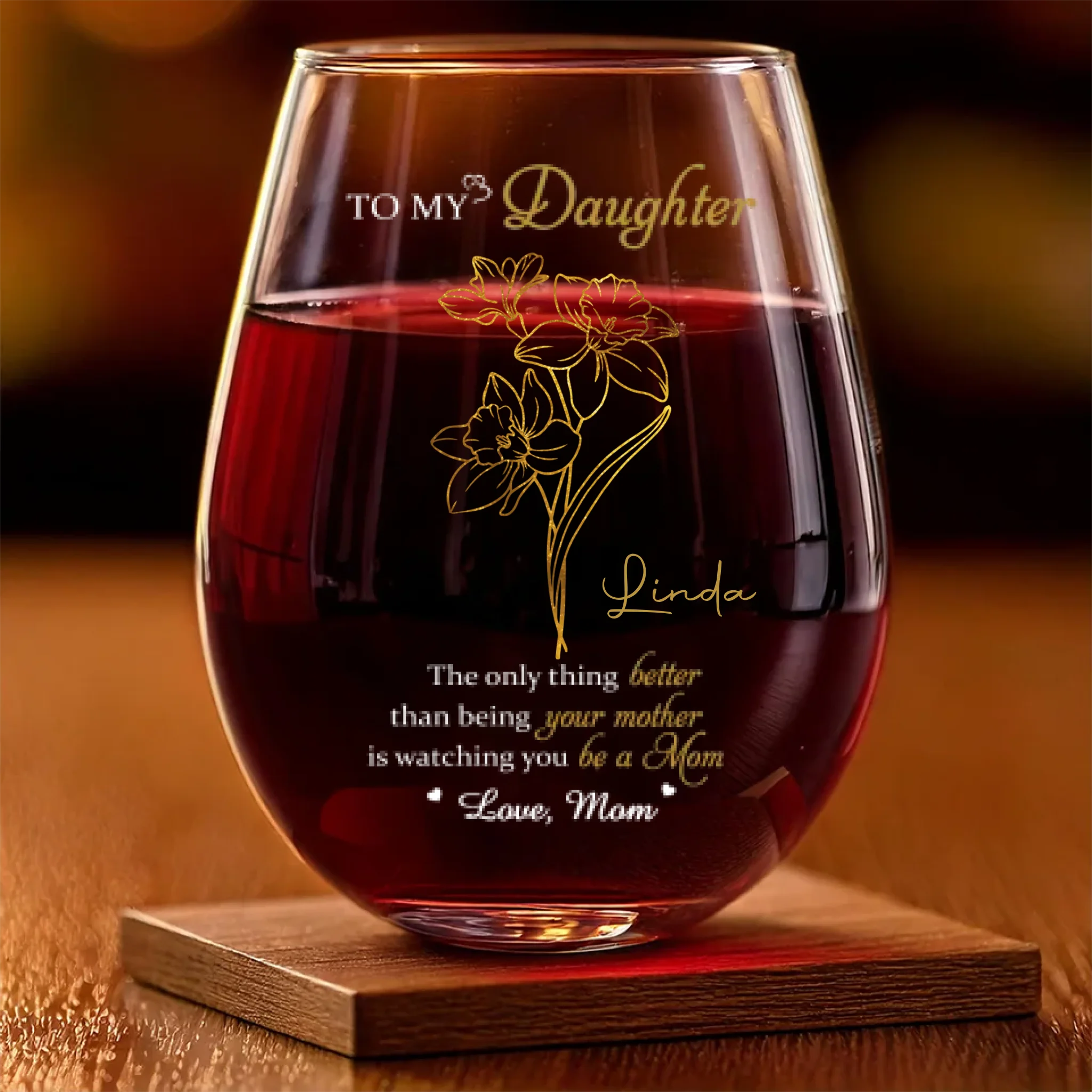 A Mother’s Love, Endless And True - Family Personalized Custom Wine Glass - Mother's Day, Gift For Mom, Daughter