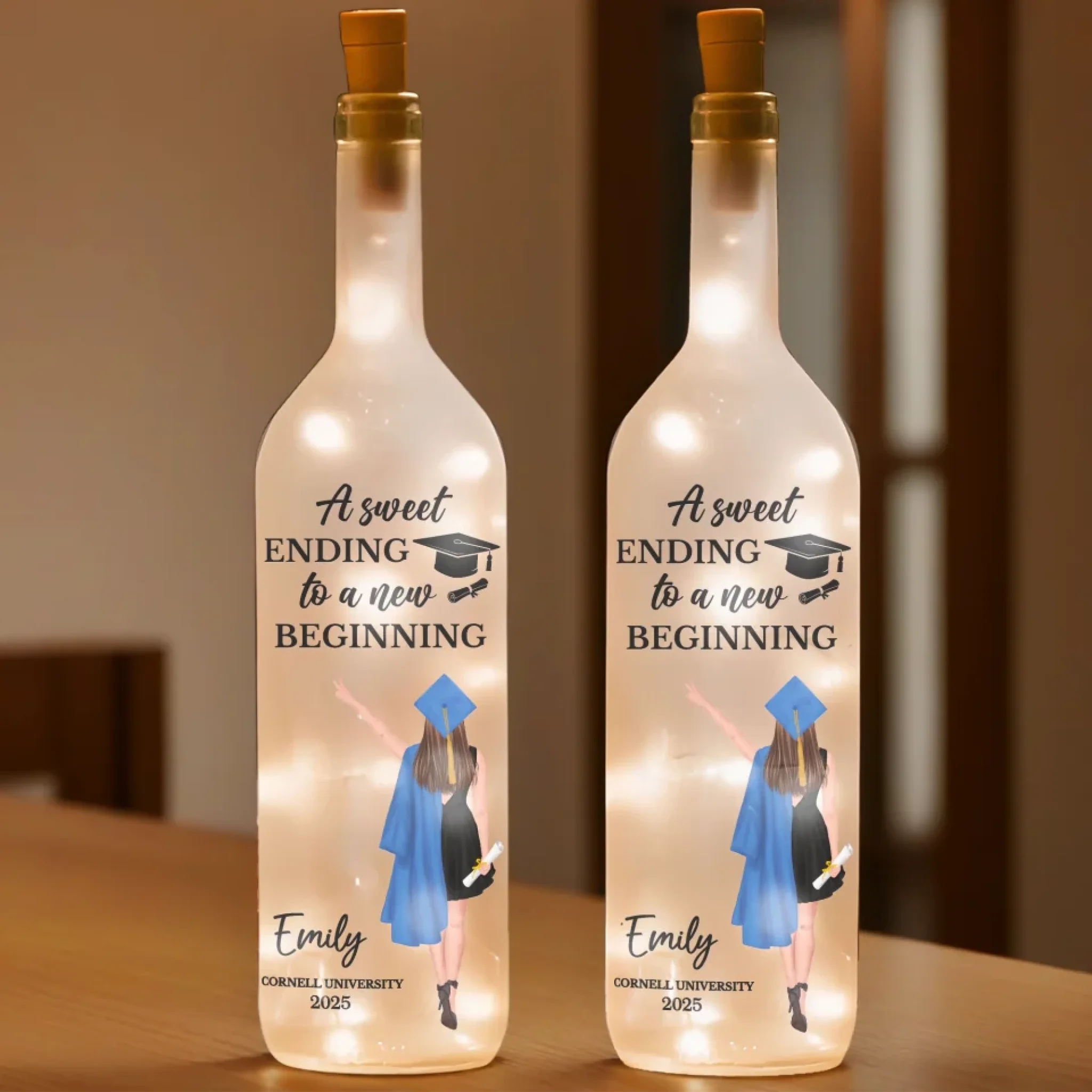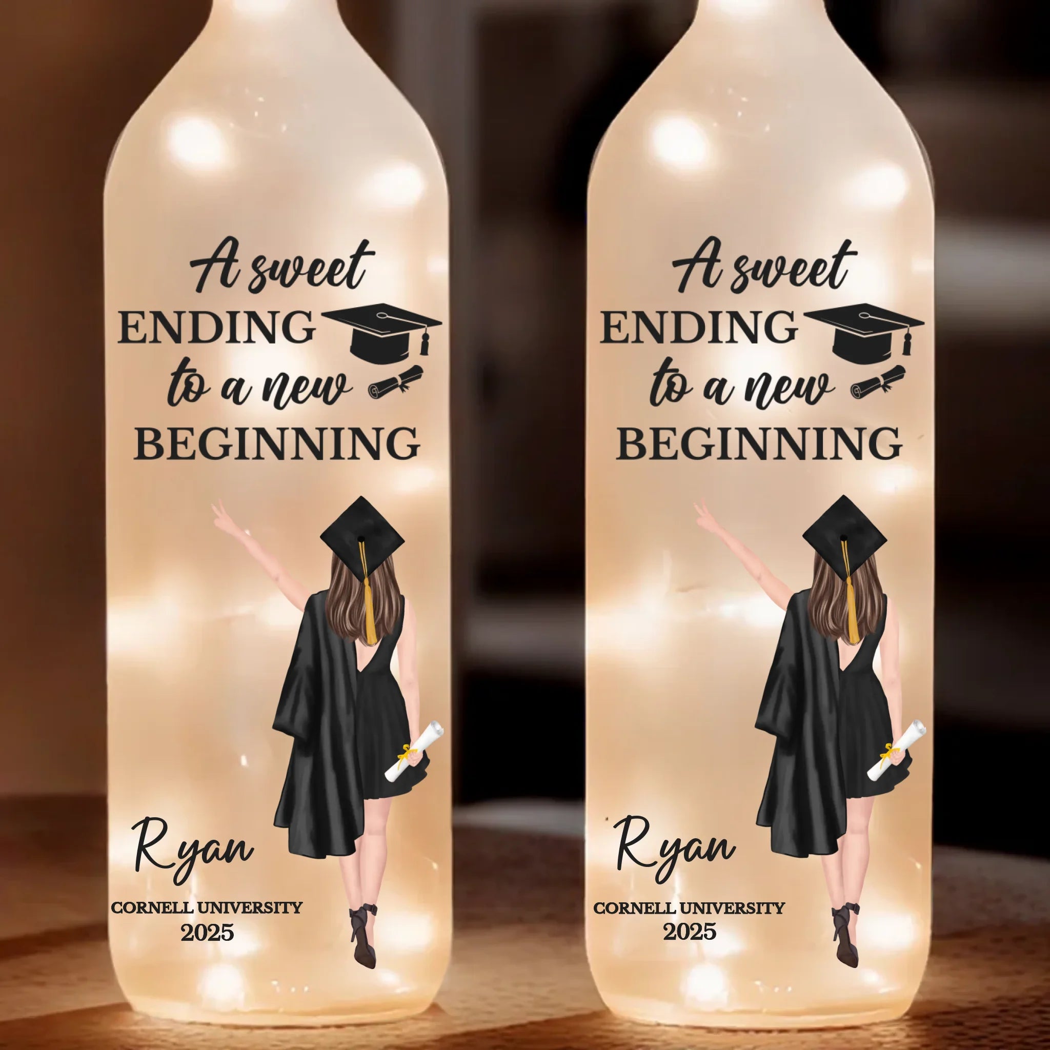 A Sweet Ending To A New Beginning - Family Personalized Custom Bottle Lamp - Graduation Gift For Family Members, Siblings, Brothers, Sisters