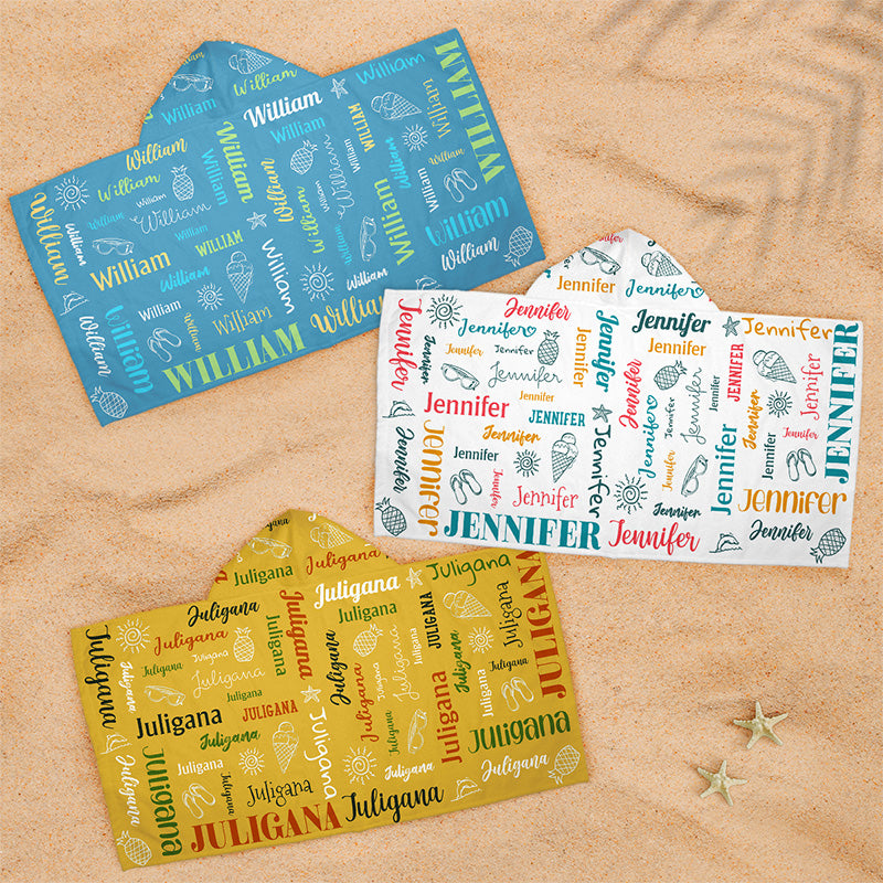 Colorful Lettering - Family Personalized Custom Kid Hooded Beach Towel - Gift For Kids, Family Members