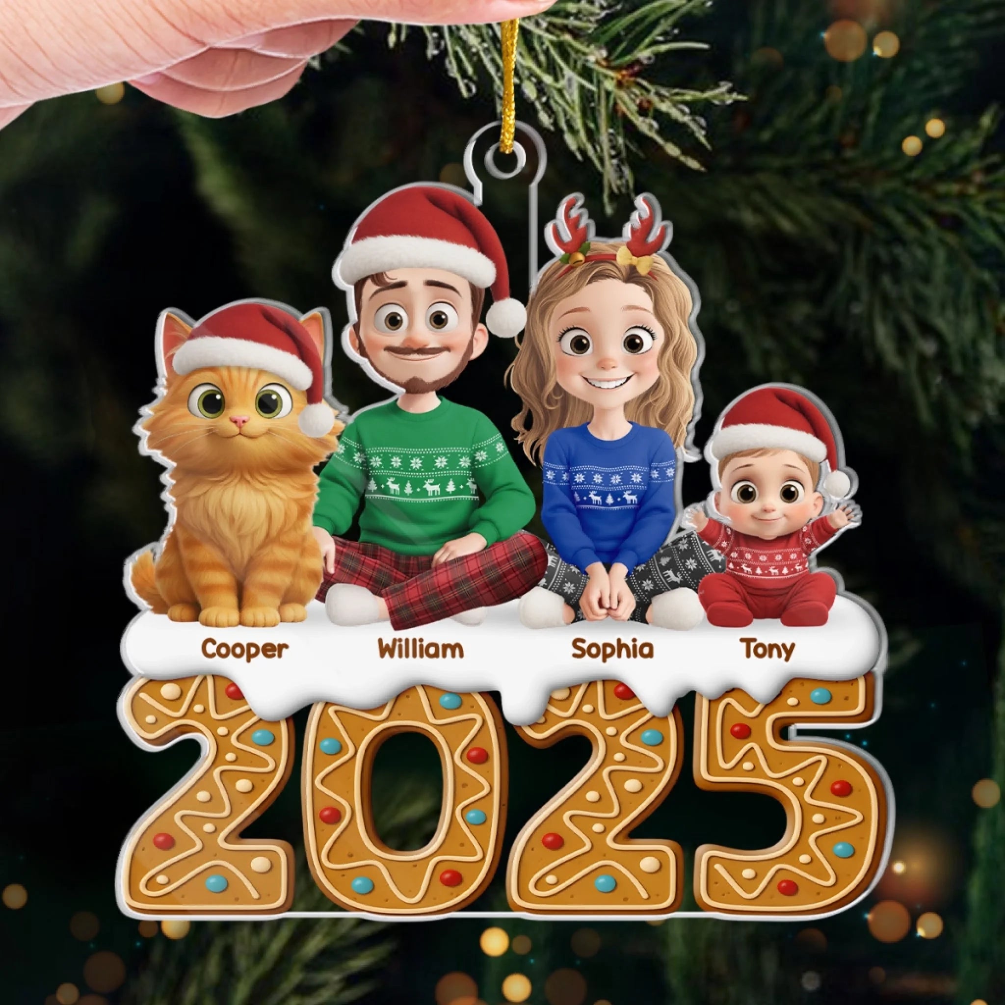 Custom Acrylic Ornament - Personalized Christmas Birthday Gifts For Family, Dog Cat Lovers - Gingerbread Dreams, Family Themes