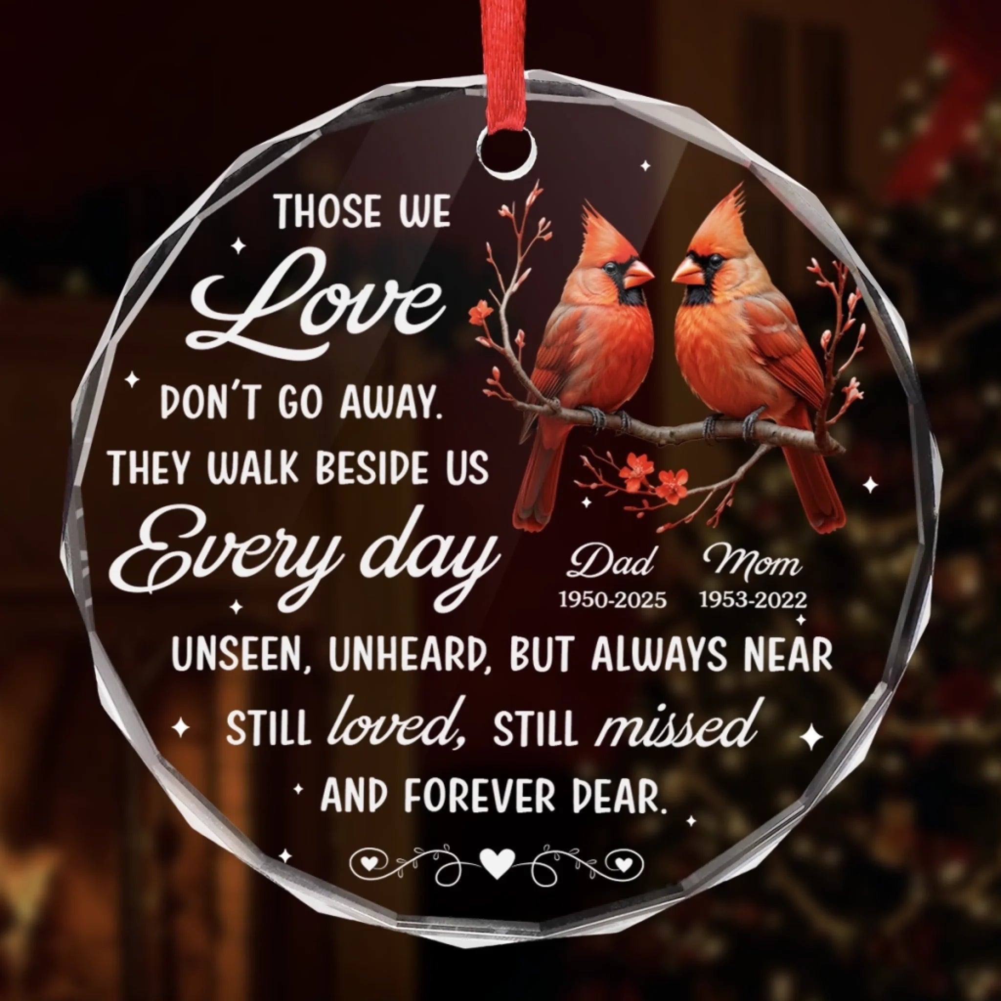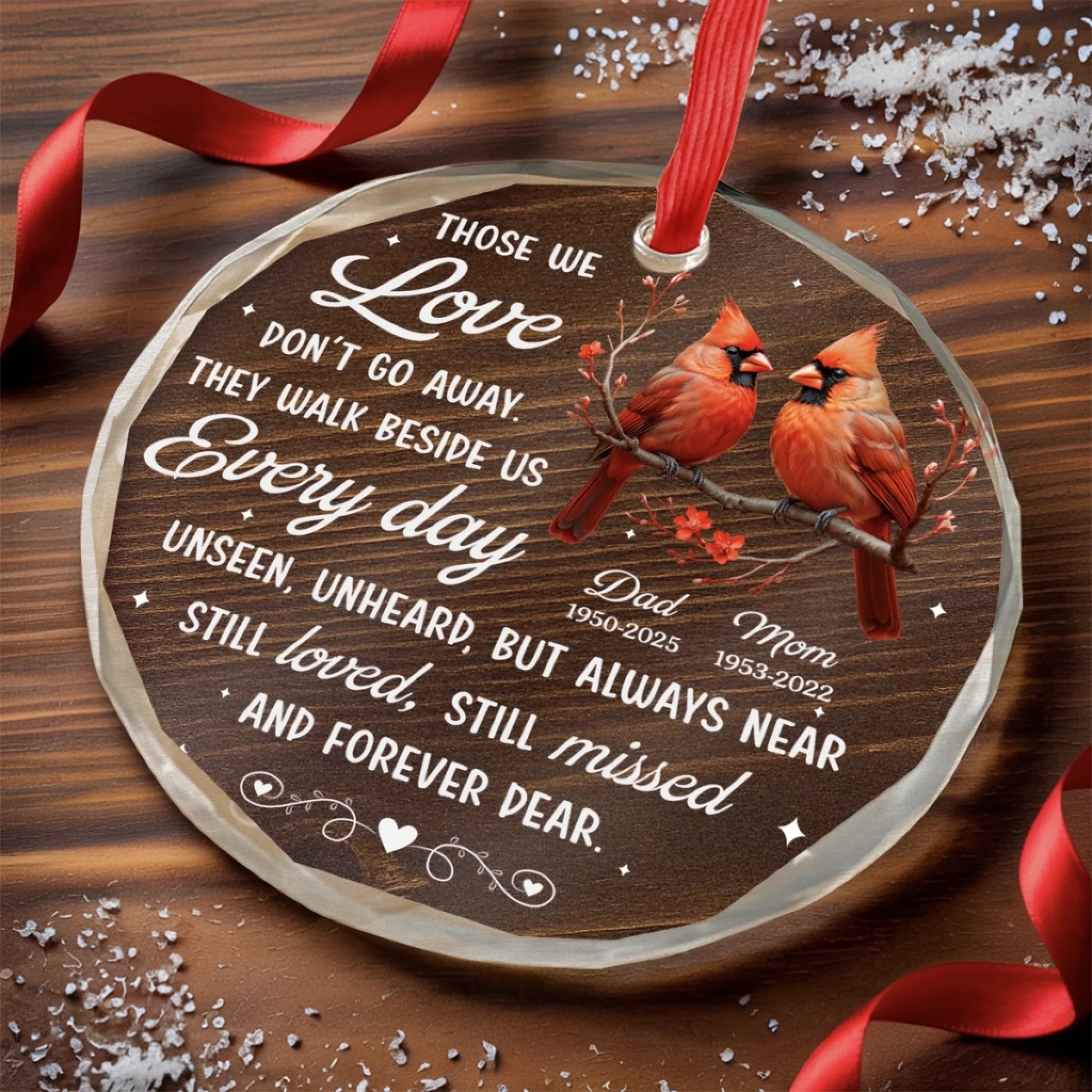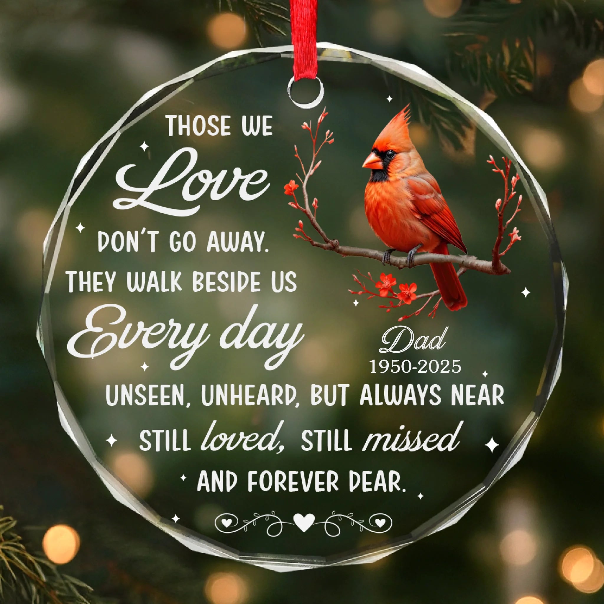 Custom Cardinal Circle Glass Ornament - Personalized Christmas Memorial Sympathy Gifts For Loss Of Mom, Dad - Heaven Is Not Far