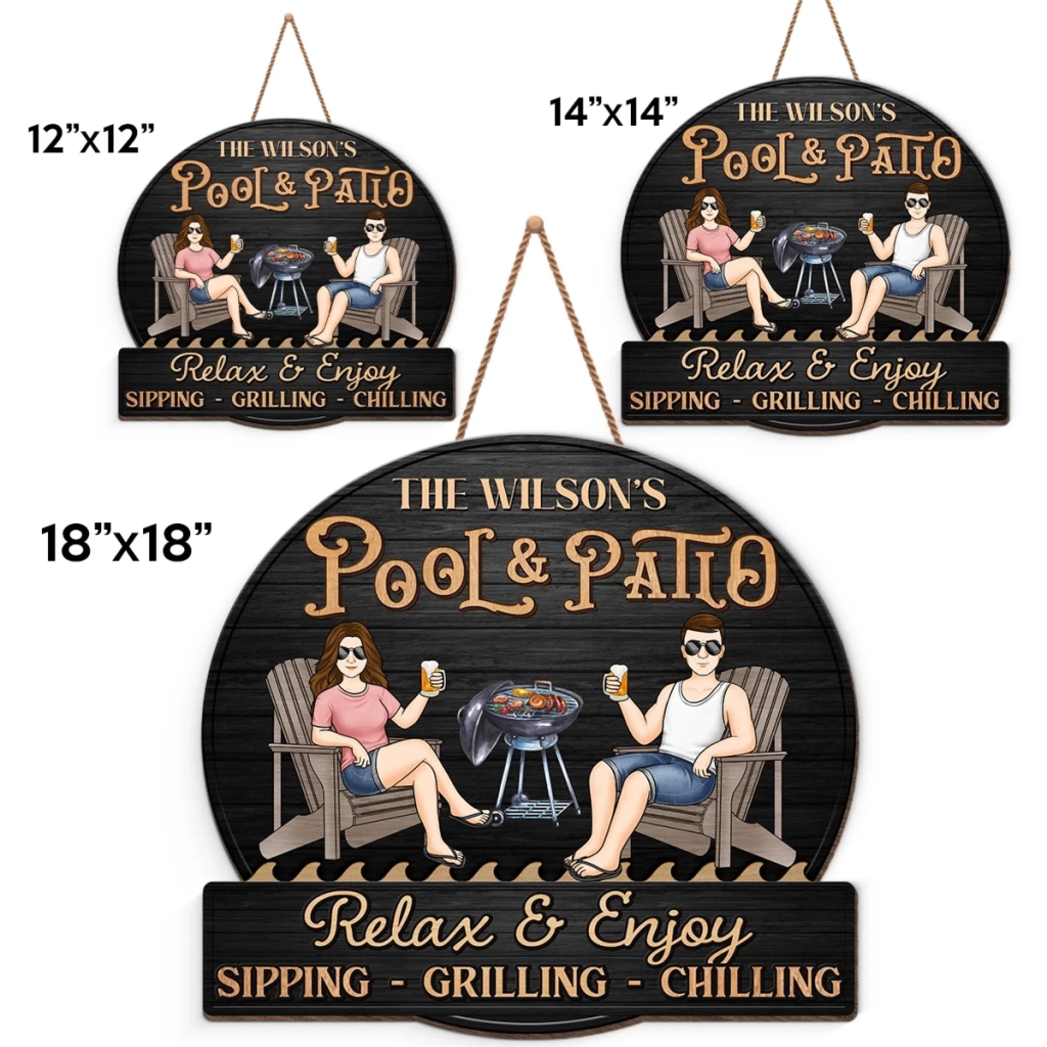 Custom Home Decor Wood Sign - Personalized Anniversary Wedding Gifts For Husband And Wife, Him And Her - Just A Couple, Pool & Patio Sipping Chilling