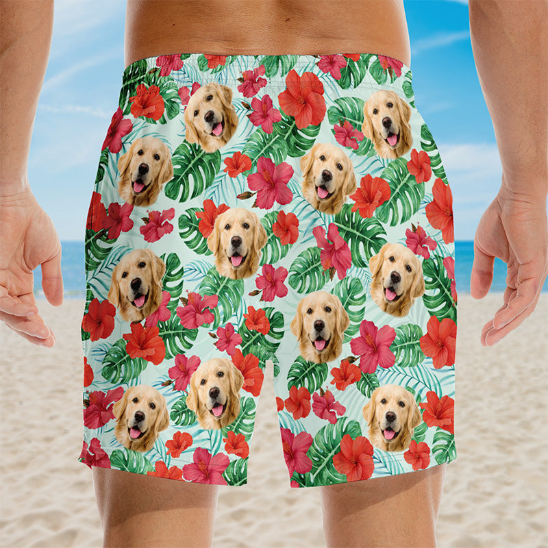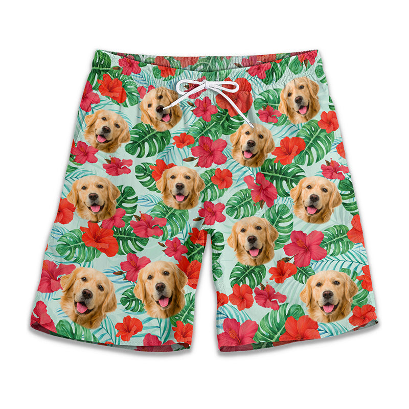 Custom Photo Don't Worry, Beach Happy - Dog & Cat Personalized Custom Tropical Hawaiian Aloha Men Beach Shorts - Summer Vacation Gift, Birthday Party Gift For Pet Owners, Pet Lovers