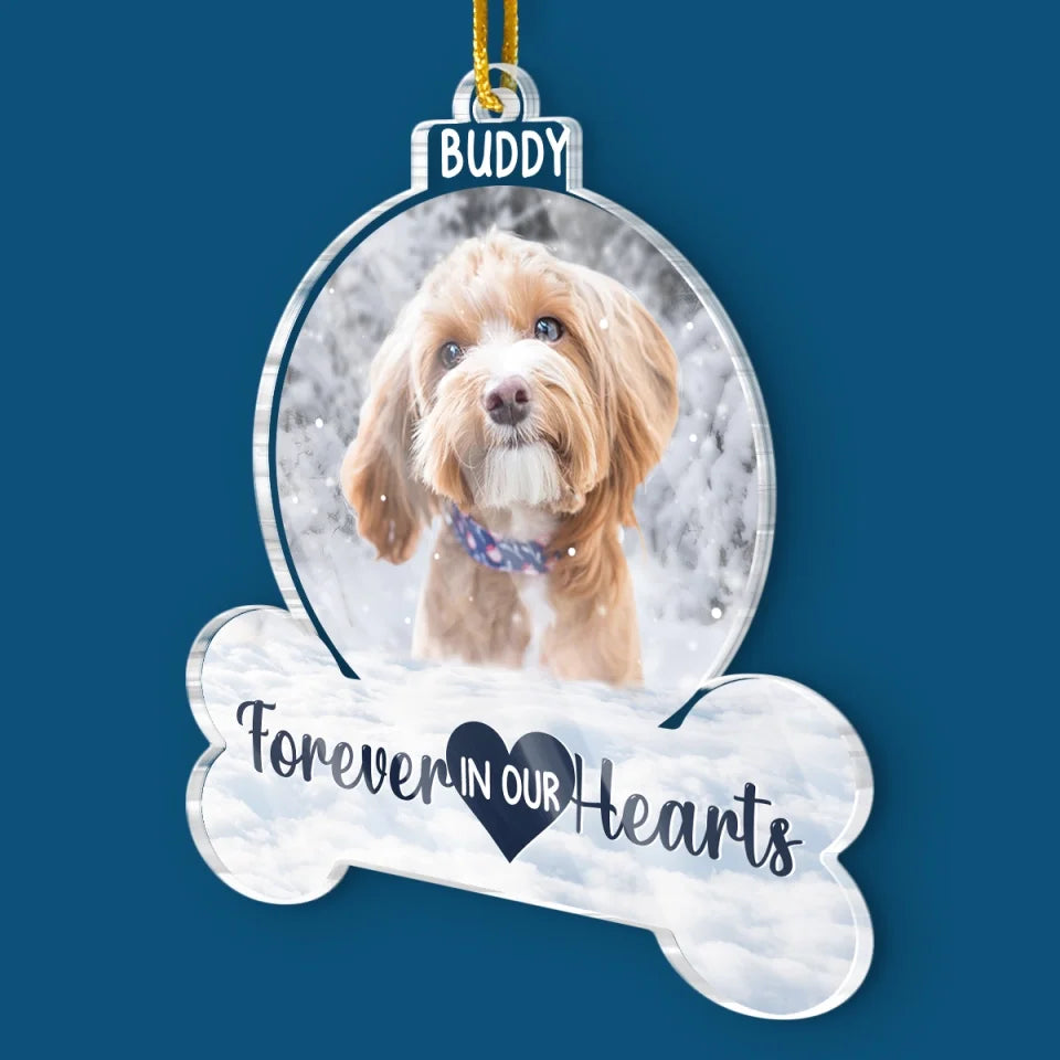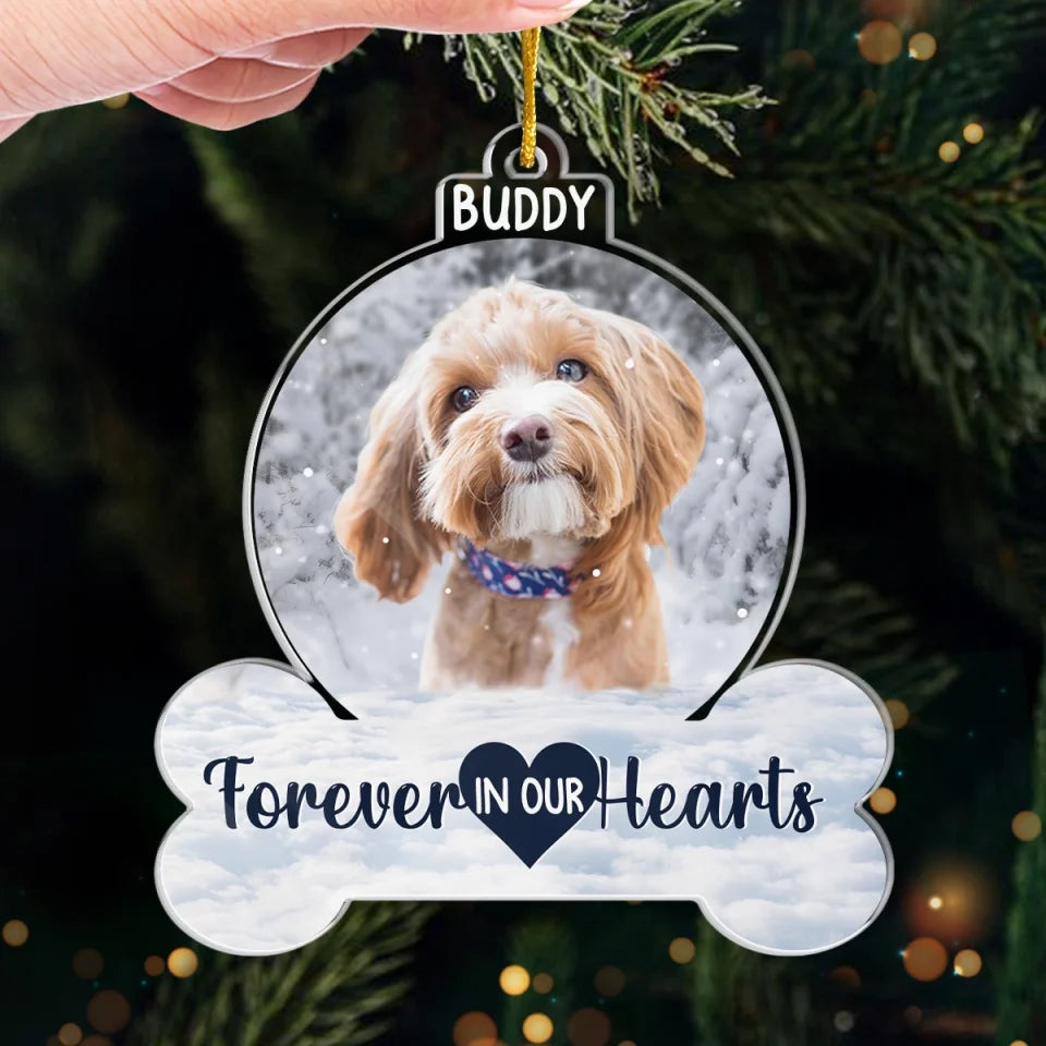 Custom Photo Forever In Our Hearts - Memorial Personalized Custom Ornament - Acrylic Custom Shaped - Sympathy Gift, Christmas Gift For Pet Owners, Pet Lovers