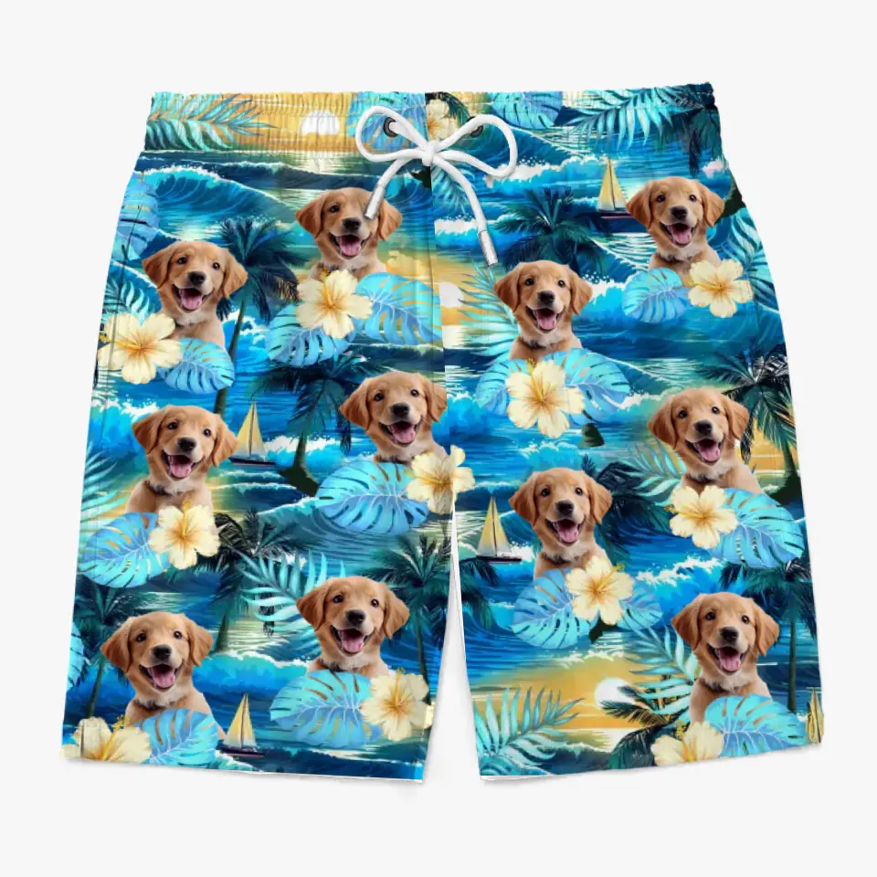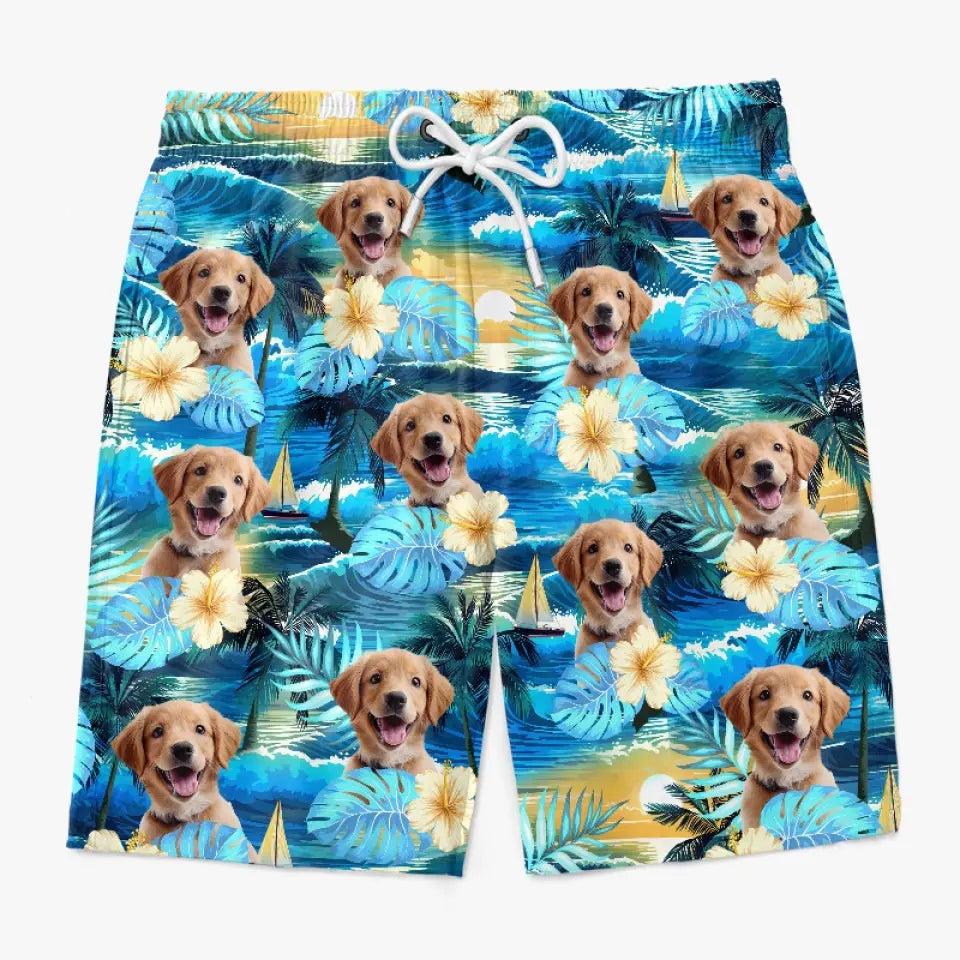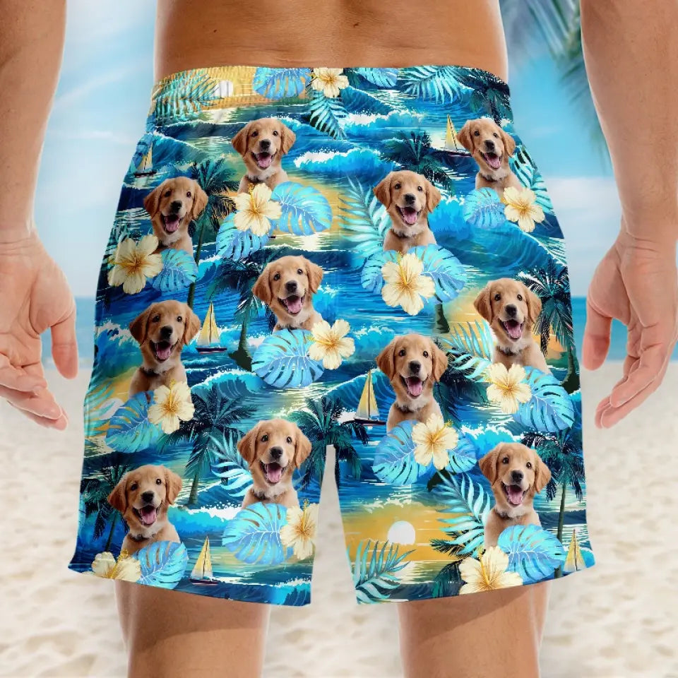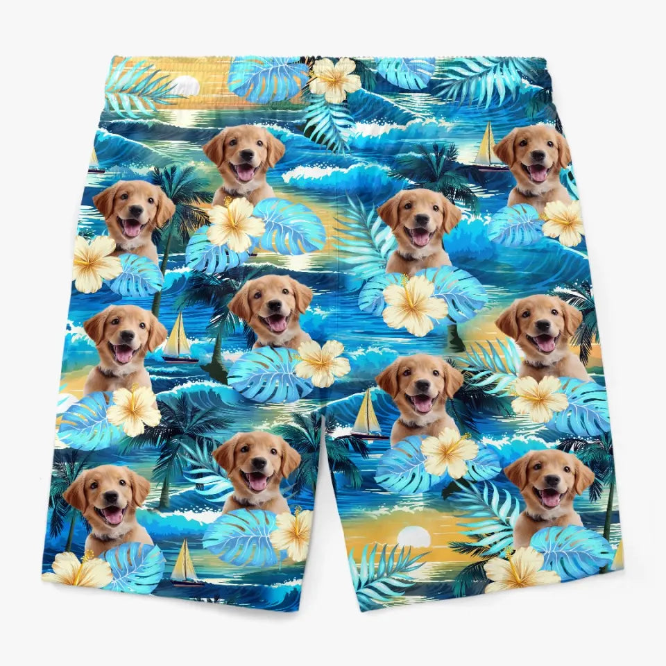 Custom Photo Sandy Paws, Happy Hearts - Dog & Cat Personalized Custom Tropical Hawaiian Aloha Men Beach Shorts - Summer Vacation Gift, Birthday Party Gift For Pet Owners, Pet Lovers
