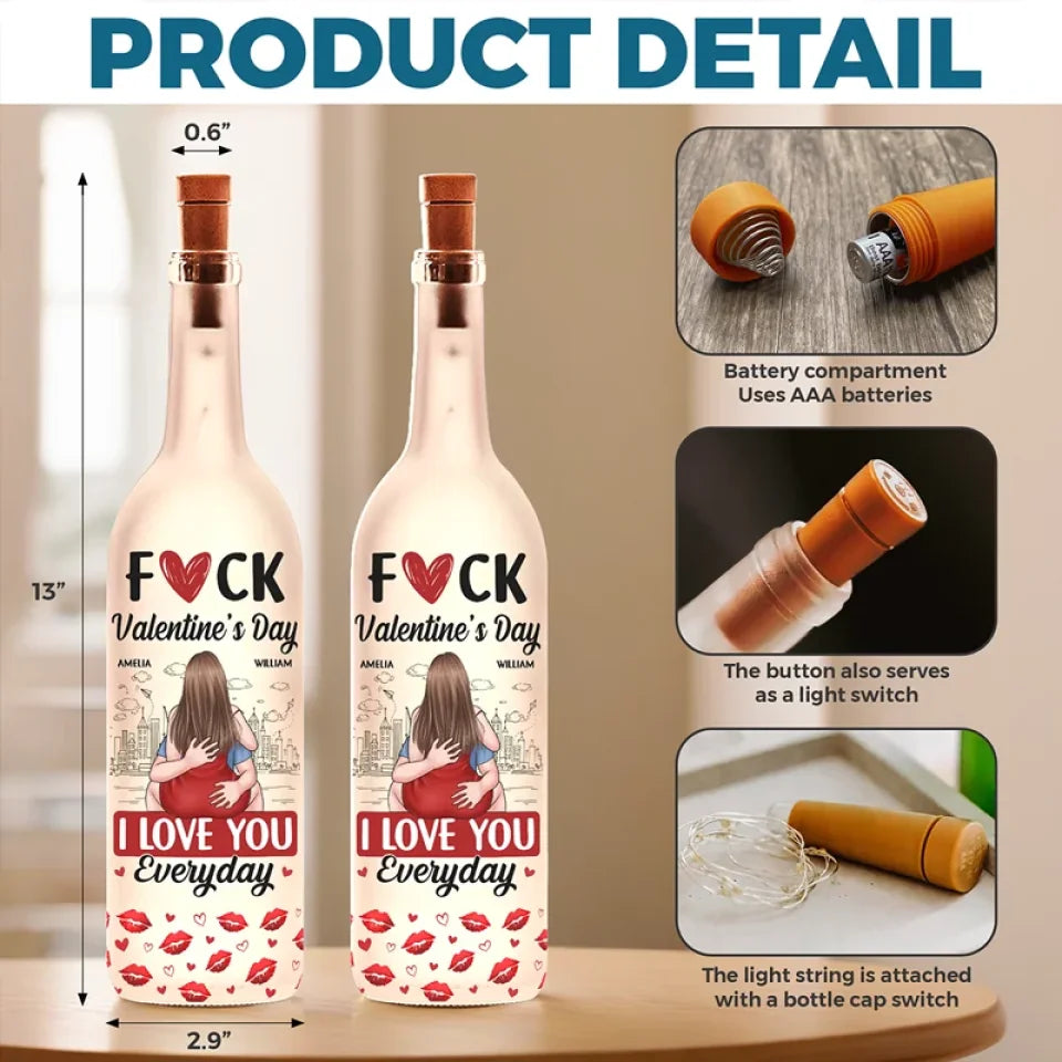 Every Day With You Feels Like Valentine’s Day - Couple Personalized Custom Bottle Lamp - Gift For Husband Wife, Anniversary