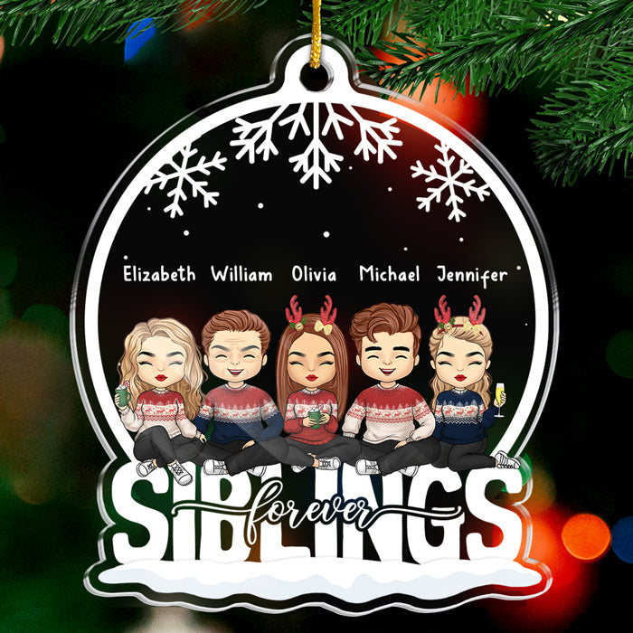 Family Where Love Never Ends - Family Personalized Custom Ornament - Acrylic Snow Globe Shaped - Christmas Gift For Siblings, Brothers, Sisters, Cousins, Friends