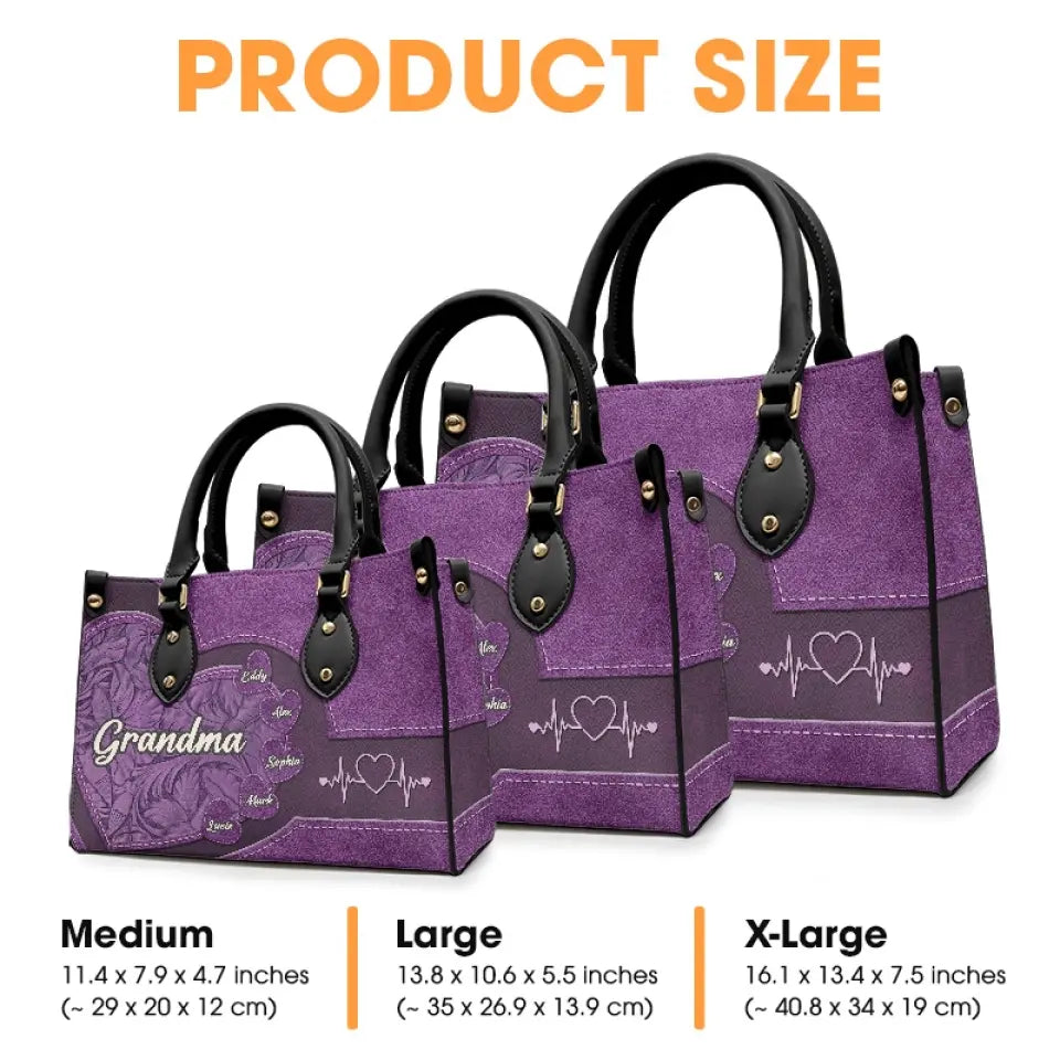 Grandma You Are The Sun In My Life - Family Personalized Custom Leather Handbag - Mother's Day, Gift For Mom, Grandma