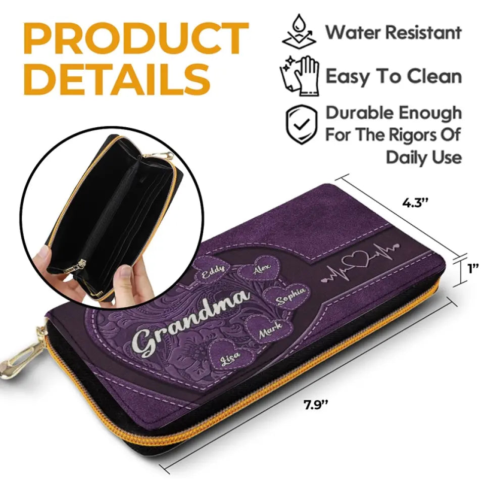 Hold My Hand, Hold My Heart - Family Personalized Custom Leather Long Wallet - Mother's Day, Gift For Mom, Grandma