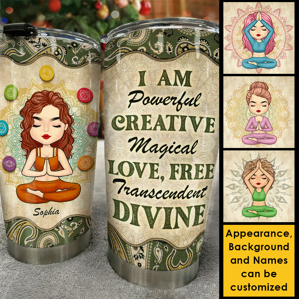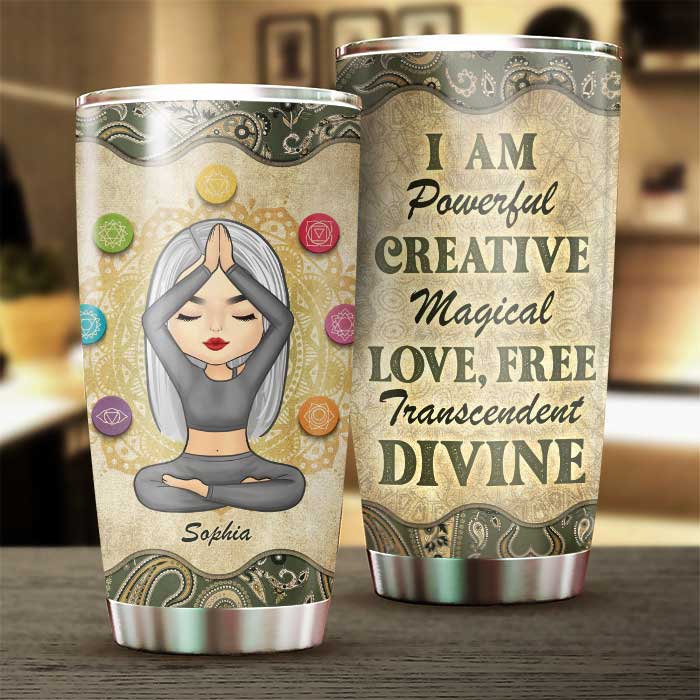 I Am Powerful Creative Magical Love Free - Personalized Tumbler - Gift For Yoga Lovers
