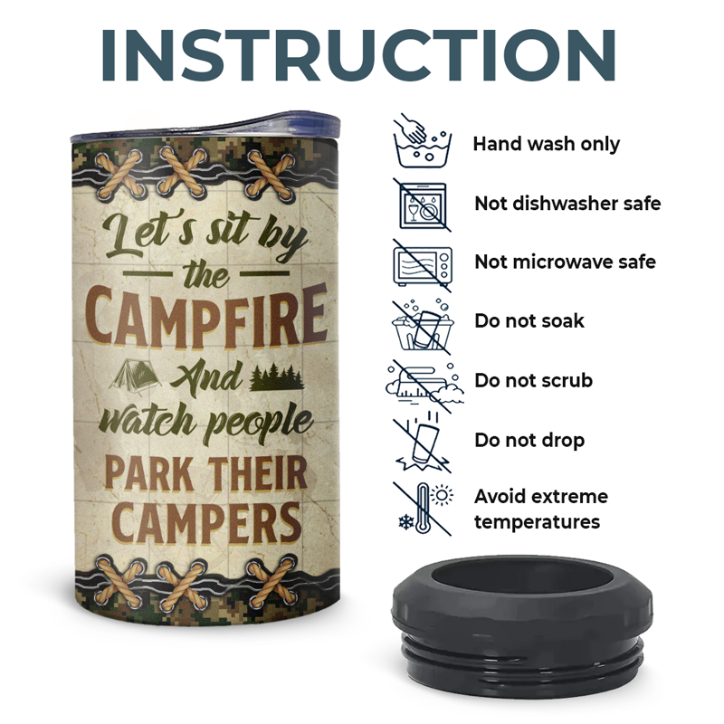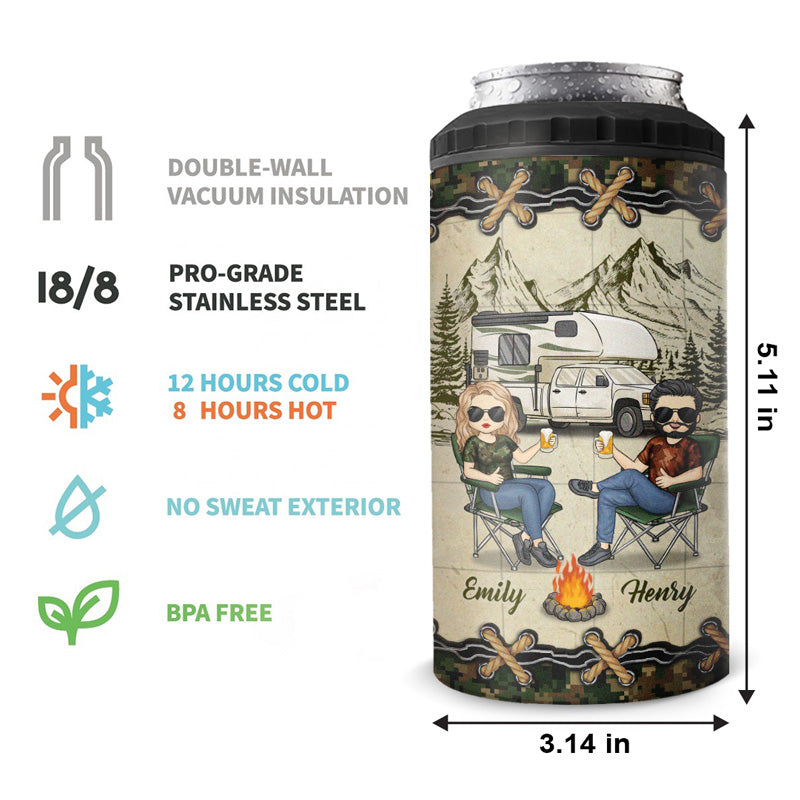 Let's Sit By The Campsite - Camping Personalized Custom 4 In 1 Can Cooler Tumbler - Gift For Husband Wife, Camping Lovers