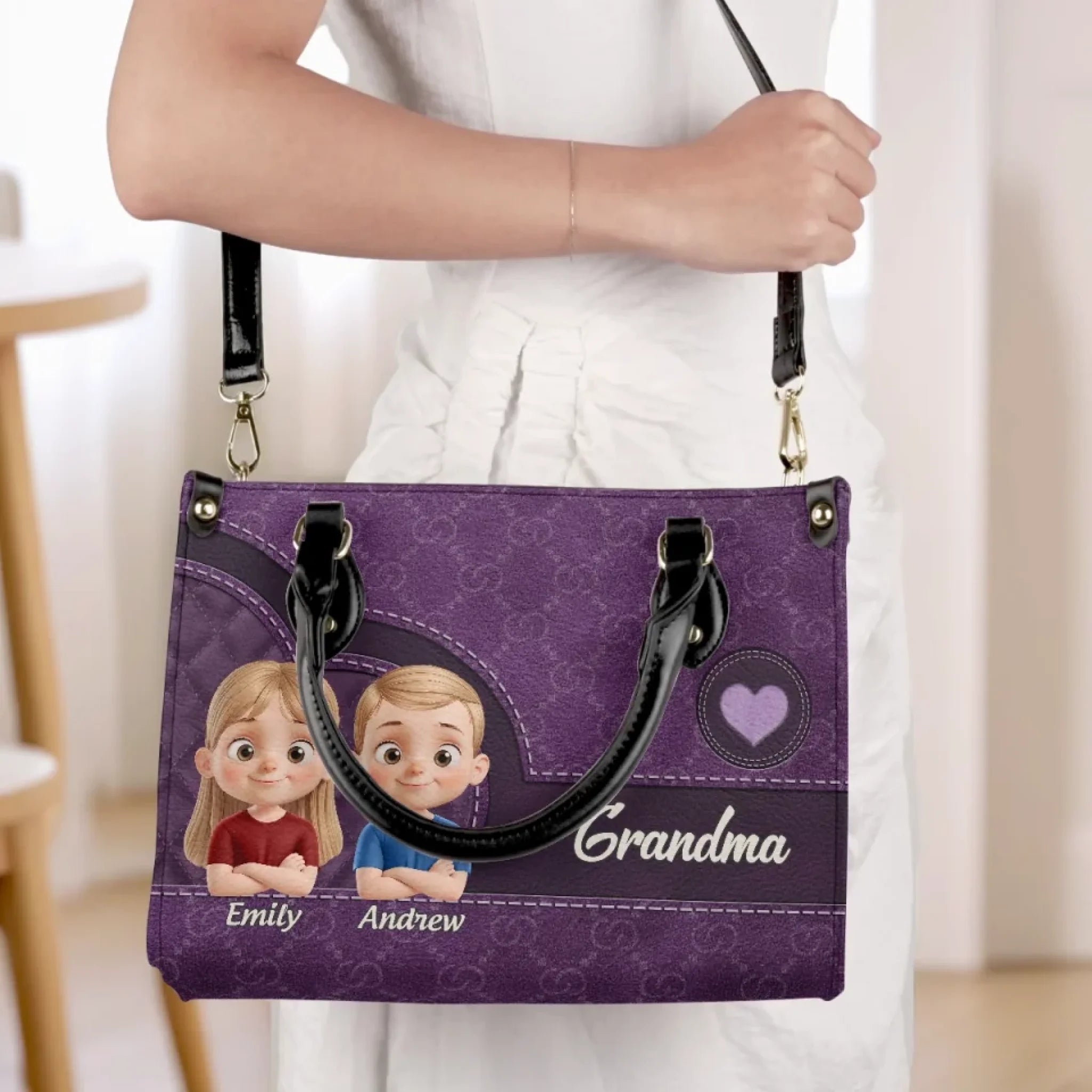 Love You, Grandma - Family Personalized Custom Leather Handbag - Mother's Day, Gift For Mom, Grandma