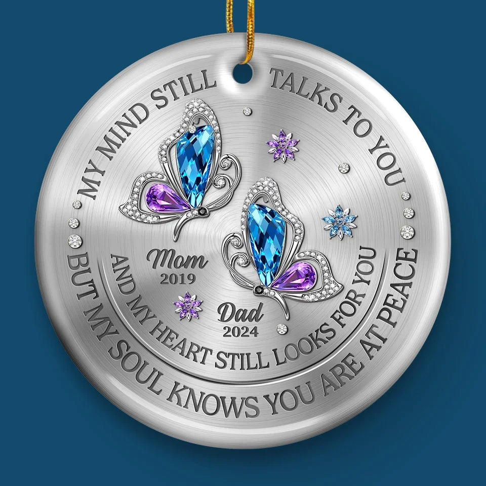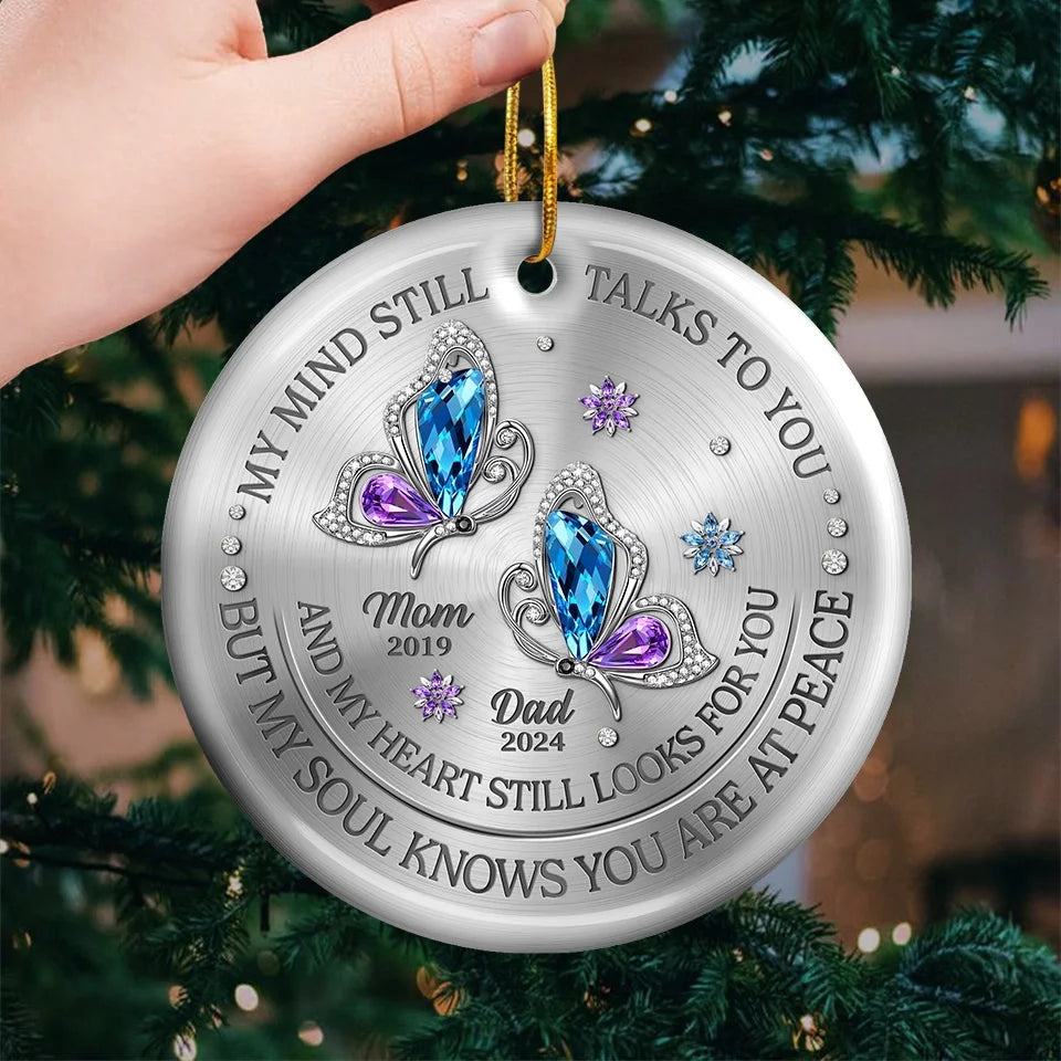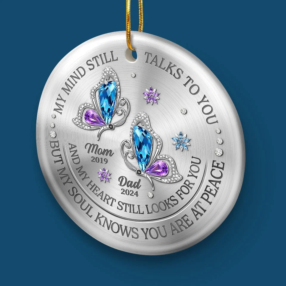 My Mind Still Talks To You And My Heart Still Looks For You - Memorial Personalized Custom Ornament - Ceramic Round Shaped - Sympathy Gift, Christmas Gift For Family Members