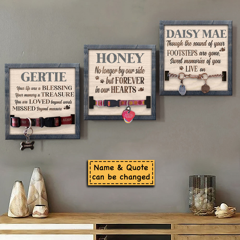 This pet loss sign is a wonderful way to celebrate your loving pet's life instead of putting their collars in a memory box for years. It is a sweet reminder that although they are gone, they are not forgotten and being reminded of how lucky we were to have them in our life. It is also a perfect sympathy gift to show your care to someone who has lost their beloved family pet.