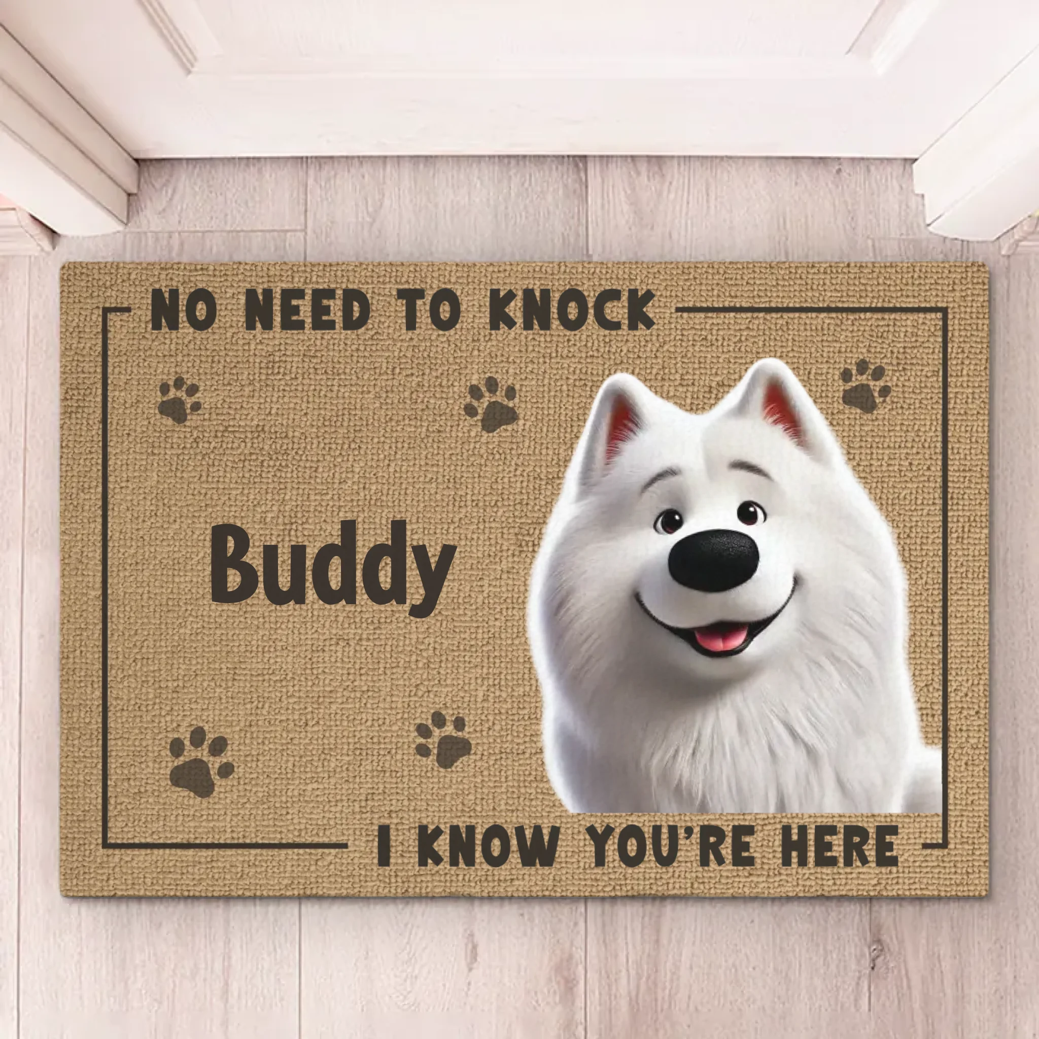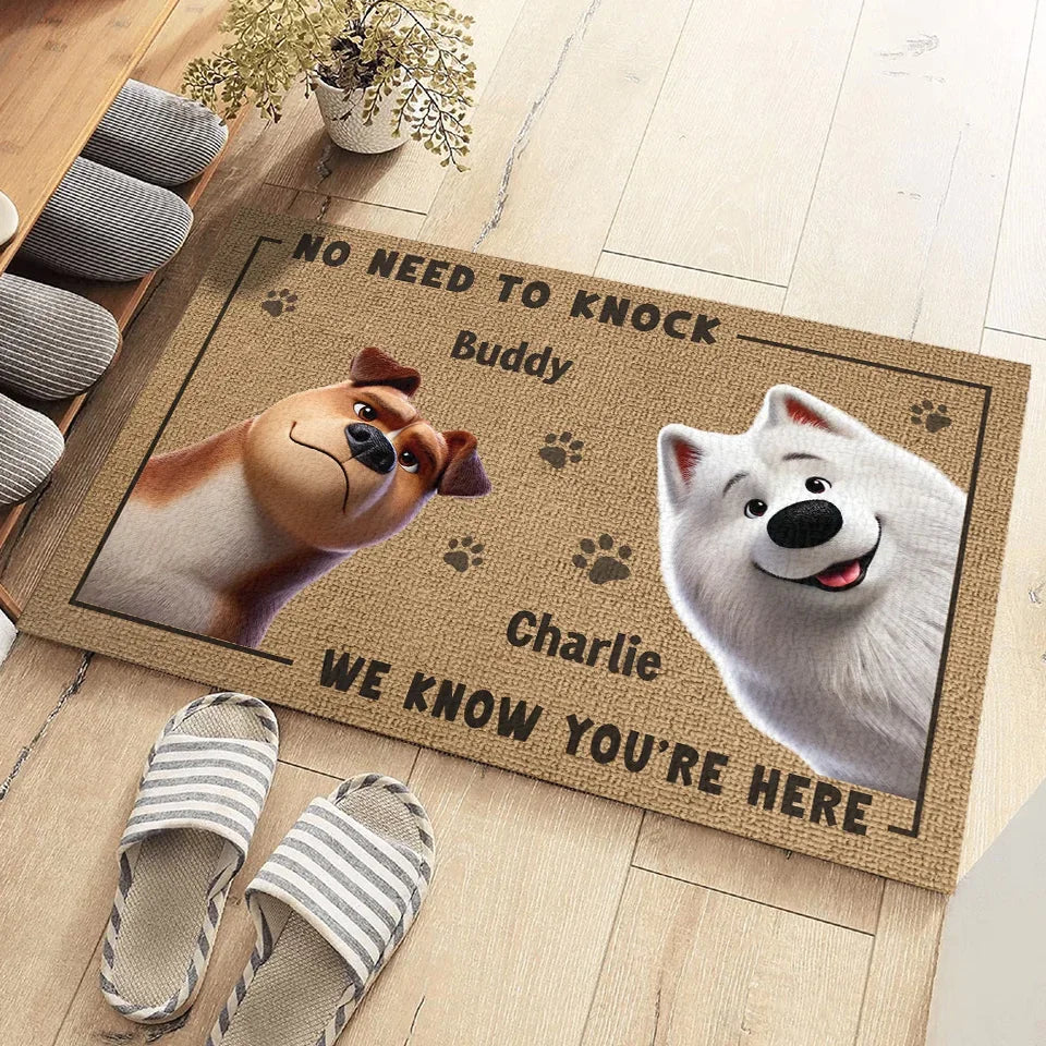 No Need To Knock, My Dog Already Told Me You're Here - Dog Personalized Custom Home Decor Decorative Mat - House Warming Gift For Pet Owners, Pet Lovers