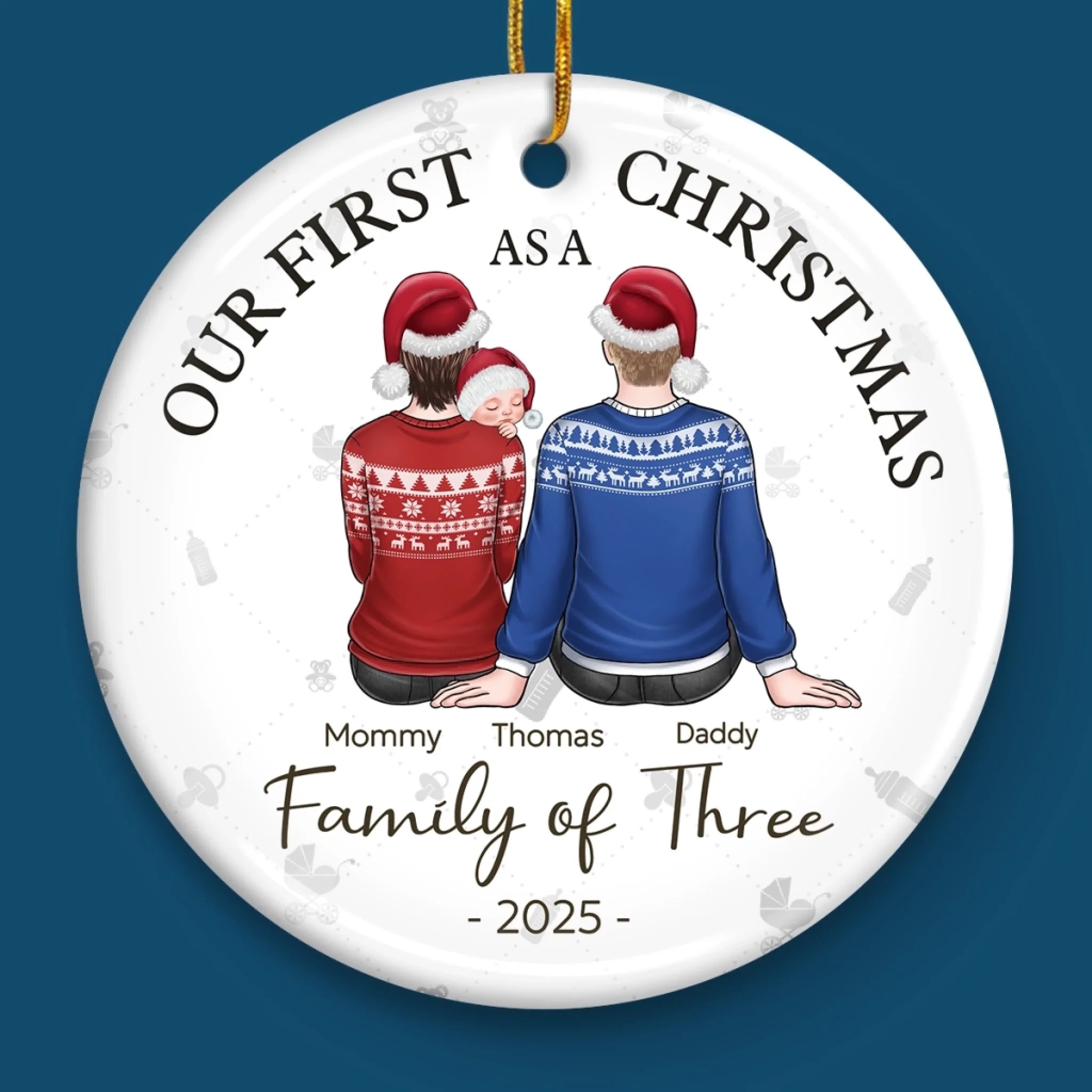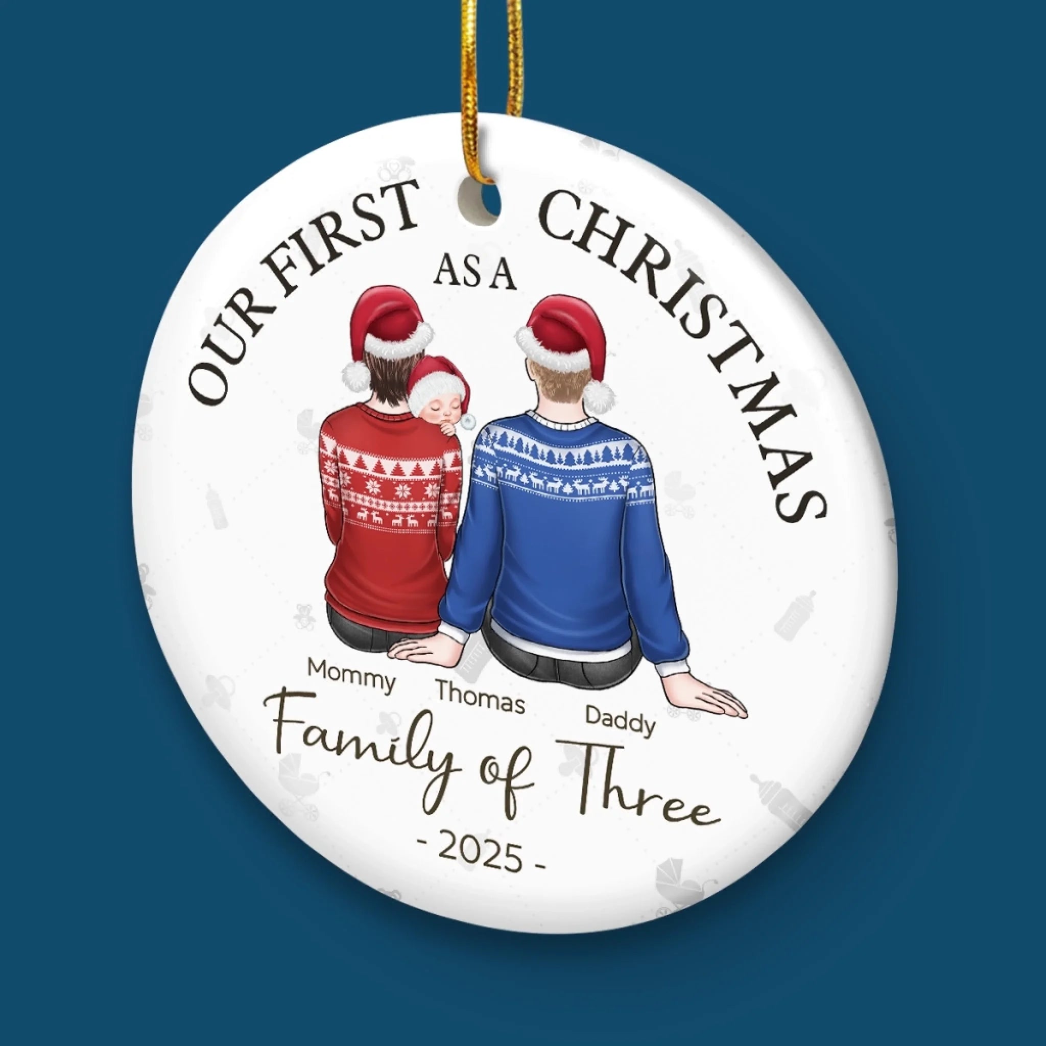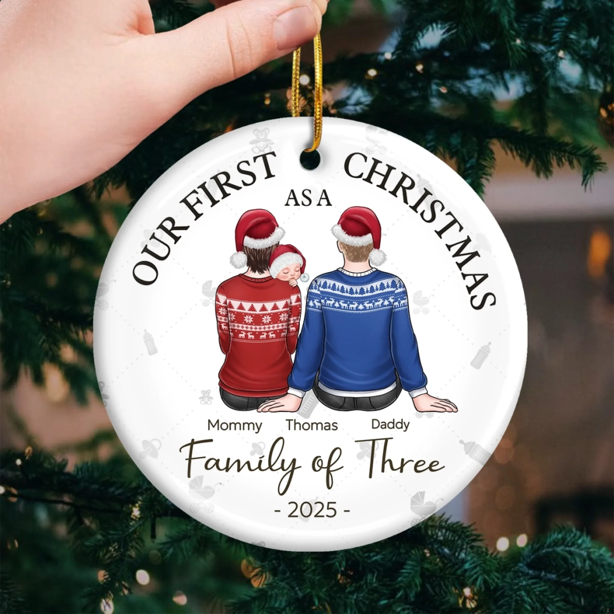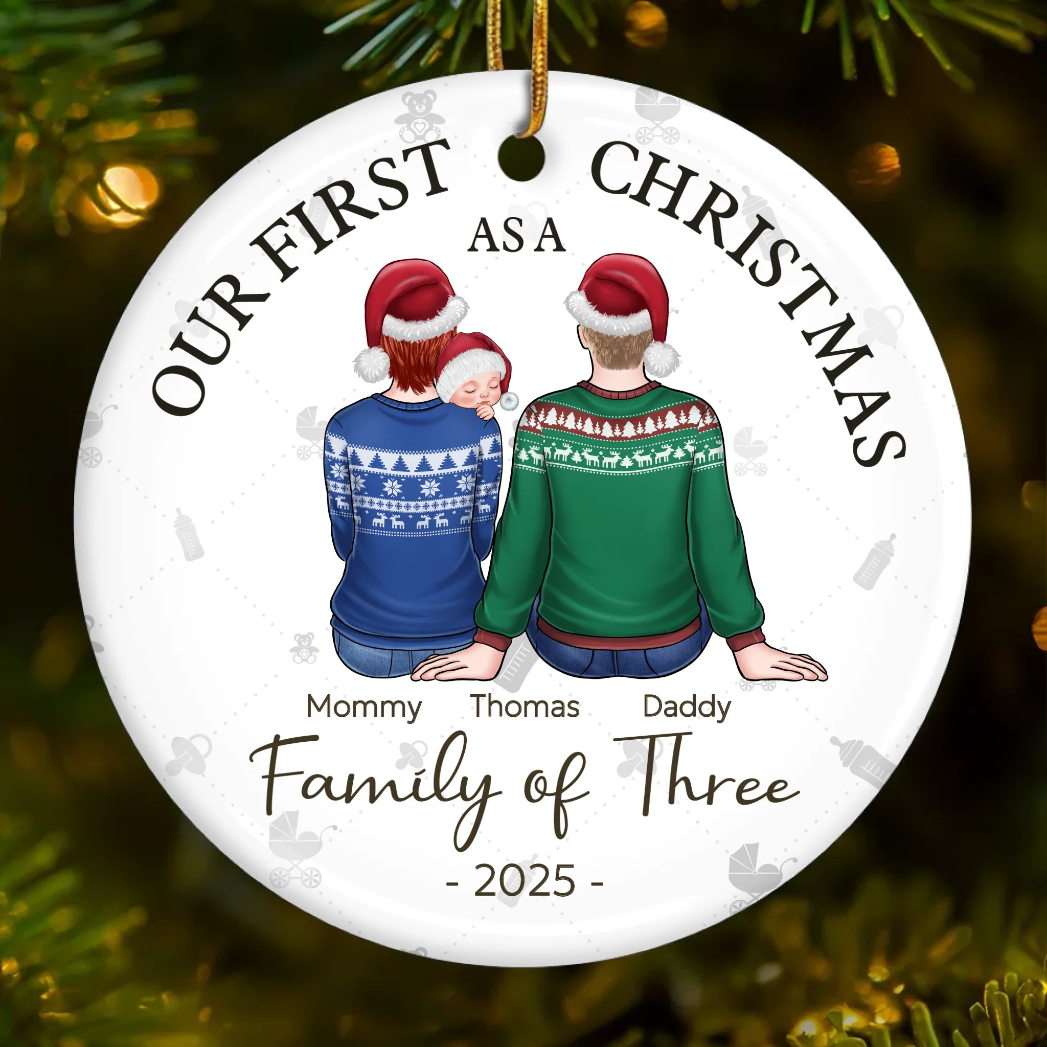 Our First Christmas As A Family - Family Personalized Custom Ornament - Ceramic Round Shaped - Christmas Gift For Family Members, Baby Kids, Newborn Baby, First Christmas