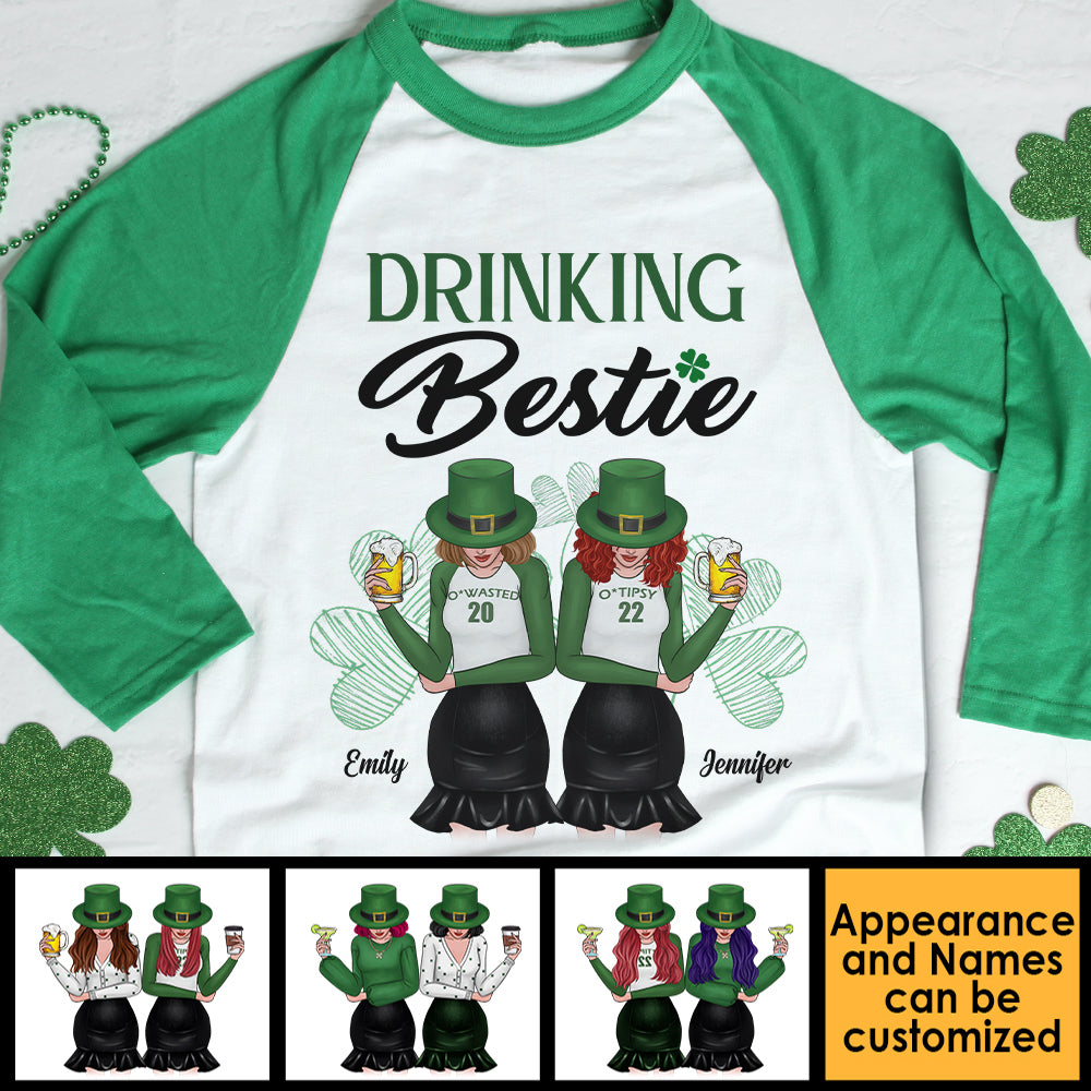 She's My Drinking Bestie - Gift For Besties, Personalized St. Patrick's Day Unisex Raglan Shirt