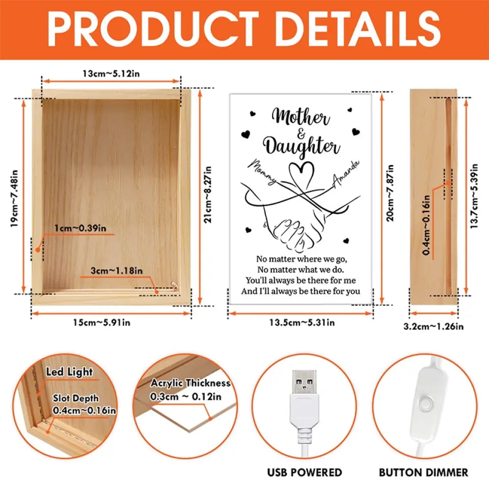 Side By Side Hand In Hand - Family Personalized Custom Frame Light Box - Mother's Day, Gift For Mom