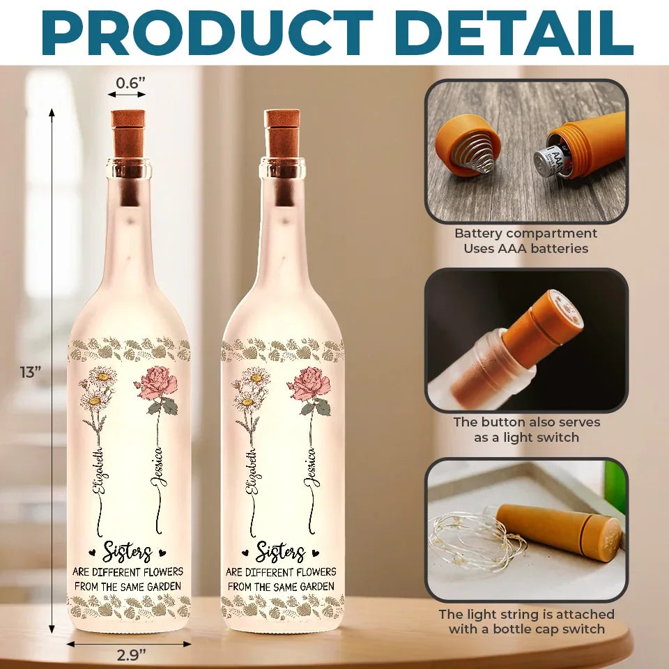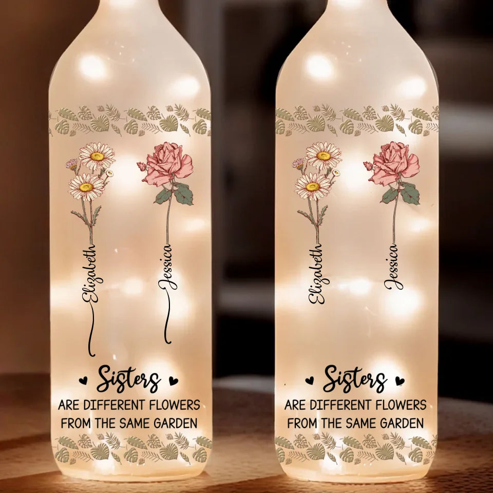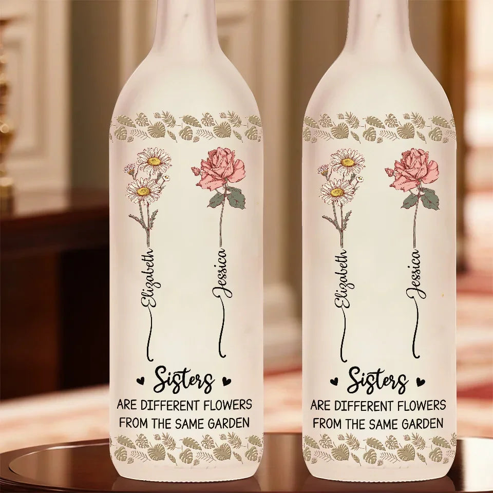 Sisters Are Different Flowers From The Same Garden - Bestie Personalized Custom Bottle Lamp - Gift For Best Friends, BFF, Sisters