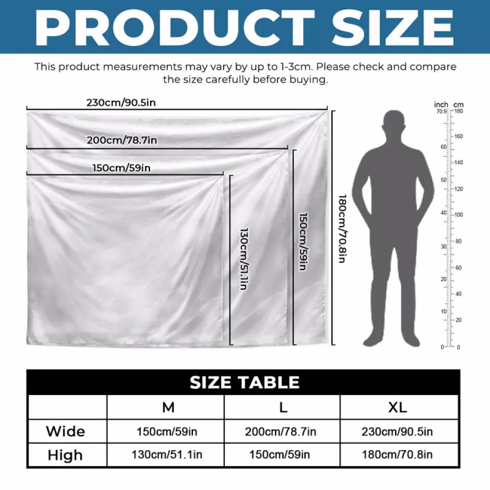 • XL – 90.5x70.8 in (230x180 cm).