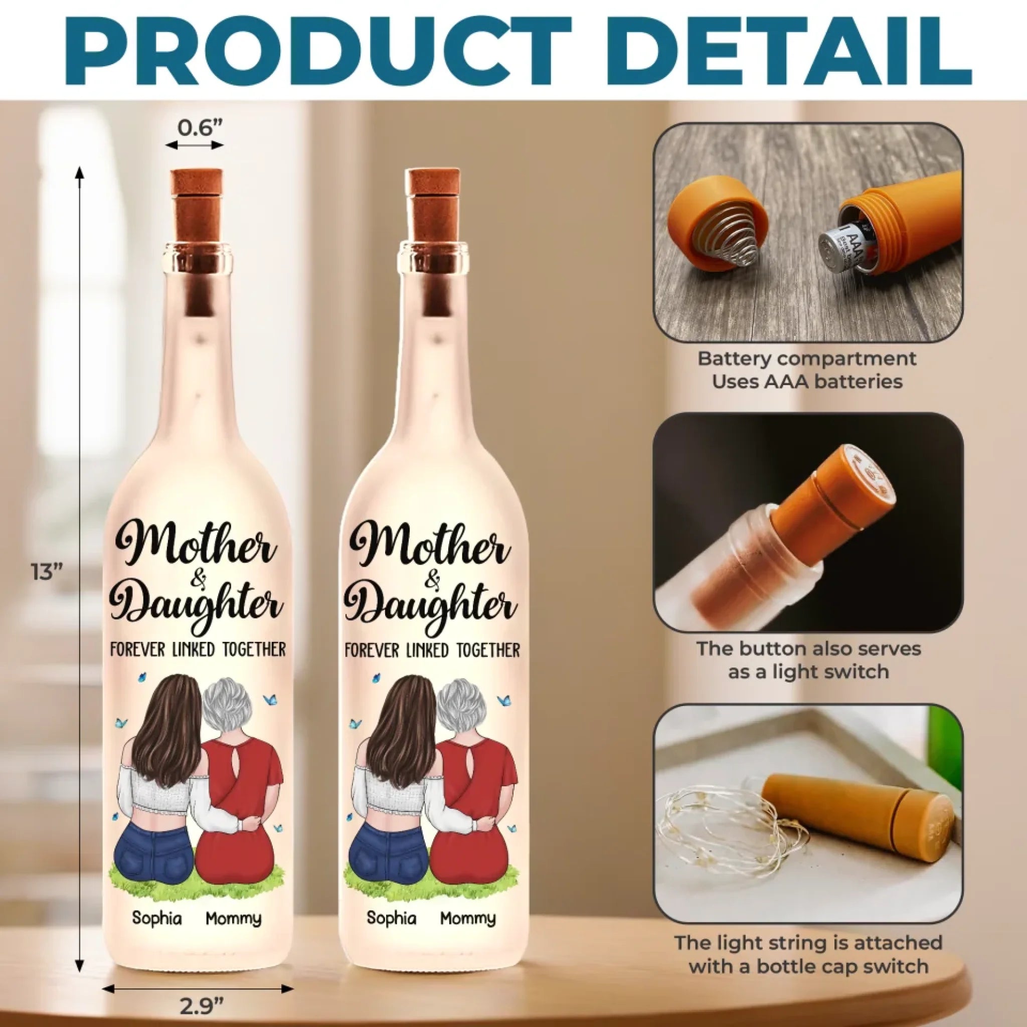 This bottle lamp is a unique and stylish decor item, blending sleek design with a soft, warm glow that brightens any space while adding a cozy, inviting touch. Perfect as a charming addition to your home, it radiates elegance and positivity. An ideal gift for anyone, suitable for all occasions: birthdays, holidays, anniversaries, graduations, Valentine's Day, Mother's Day, Father's Day, and just because! Whether for friends, family, or that special someone, this versatile gift is guaranteed to bring joy and make lasting memories.