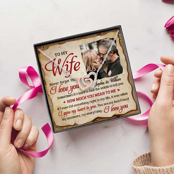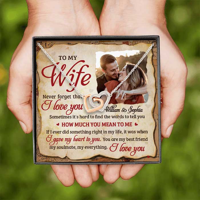 You Mean So Much To Me - Upload Image, Gift For Couples - Personalized Interlocking Hearts Necklace