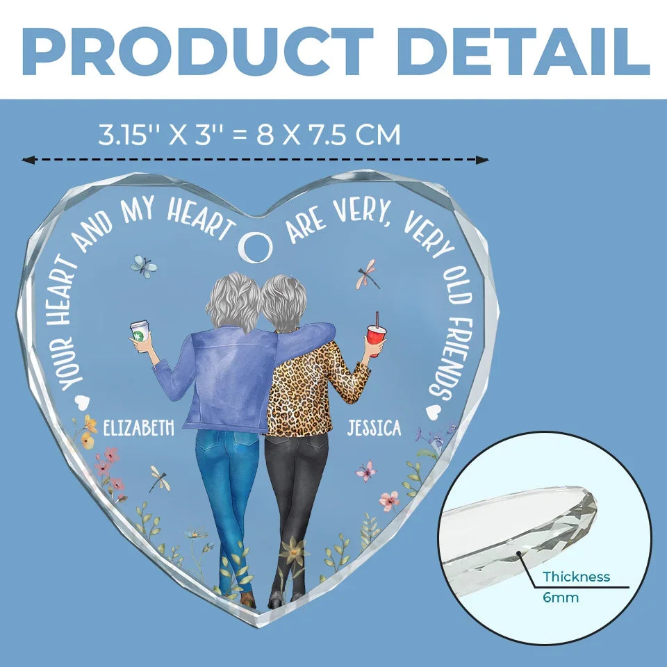 Your Heart And My Heart Are Very Old Friends - Bestie Personalized Custom Heart Glass Ornament - Christmas Gift For Best Friends, BFF, Sisters